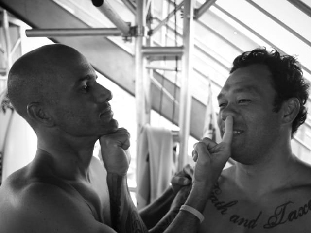 2010 Hurley Pro with Andy Irons: The tension between Slater and his rival Andy Irons was still evident. Although their long-standing rivalry had cooled somewhat, emotions flared during the event. Irons lost in Round 3 and reportedly caused chaos backstage, while Slater calmly went on to defeat major competitors Mick Fanning and Bede Durbidge to win the event.